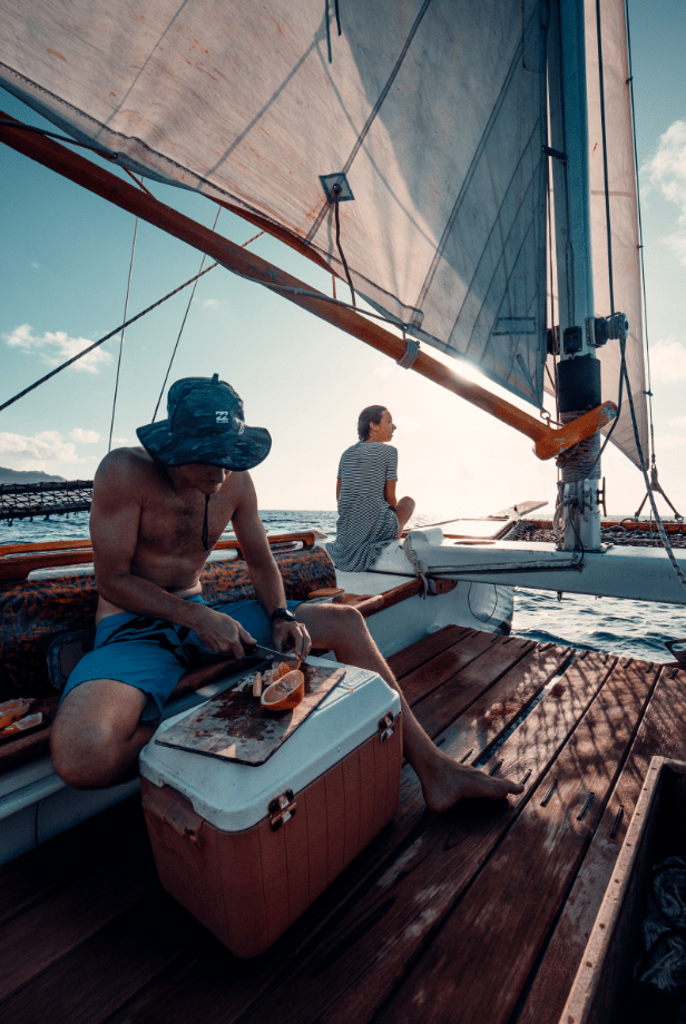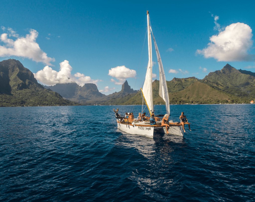 - Initiations to traditional sailing (hoisting sails, taking a cape, understanding the wind and currents) while discovering the history of Polynesian canoes.